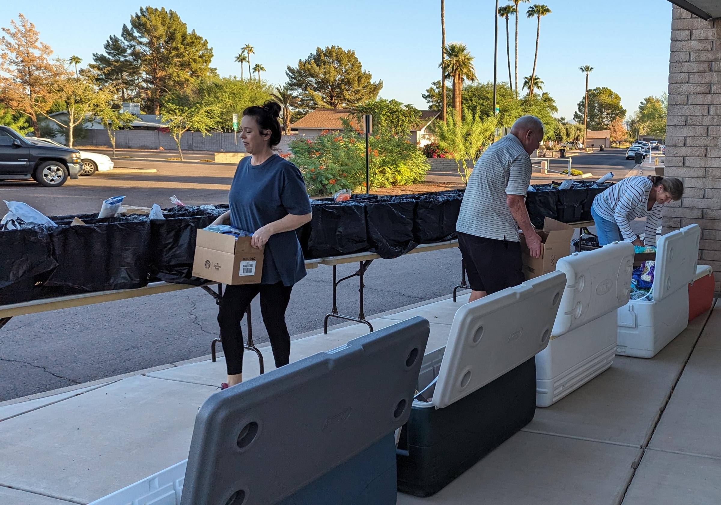 If you wish to participate in this program, please drive to the church (2540 W. Baseline Rd, Mesa, AZ) prior to 7:15 a.m. on our giveaway day. The line starts in the West parking lot (accessible from Baseline or Javelina). Contact the church office (email or call (480) 838-7309) for more information.